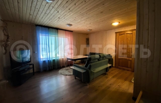В коттедже 3 спальни , большая гостиная с кухней, санузел, две просторных гардеробных.