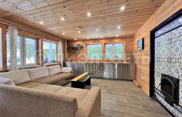 В бане просторная кухня-гостиная, с возможностью приготовления еды. В ней так же, как и в доме всё продумано до мелочей.