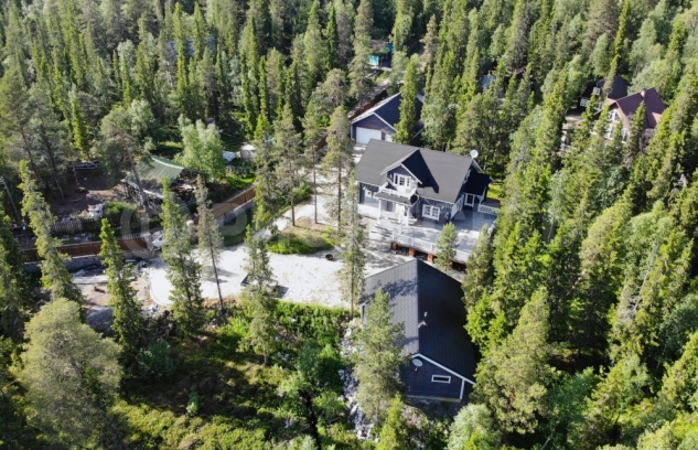 Всё в собственности, земля в аренде. Все строения 2015 года, стоят на монолитных обогреваемых плитах. Материал стен - клееный финский брус 275мм с утеплением 200мм. Крышу покрывает гибкая черепица Катепал, утепление 300мм. Полы с водяным подогревом.