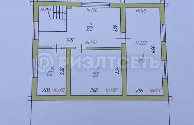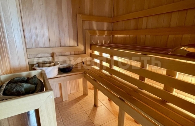 Дом - 7 комнат от 9 до 23 кв. метров, кухня гостиная 30 кв. м, два санузла, сауна, гардероб, котельная, квадратный холл.