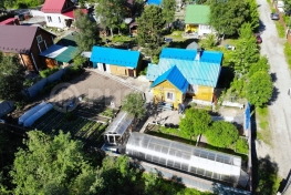 -хозяйственный блок, дровник. К дому примыкает открытая и закрытая терраса с деревянным выносом из террасной доски.