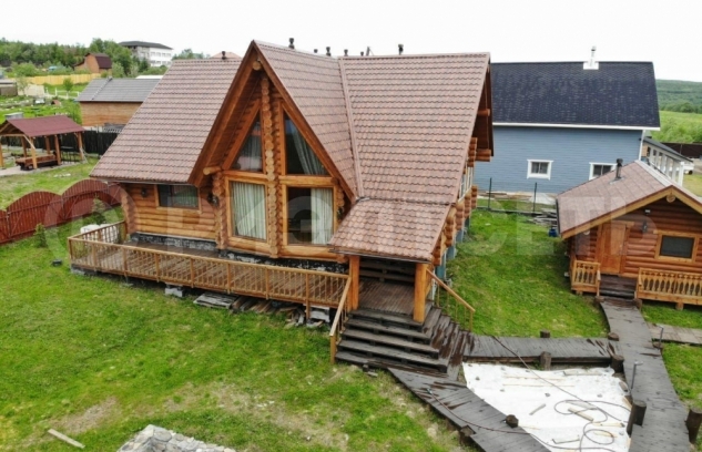 Дом и баня - бревно (из северной карельской сосны). Карельская сосна обладает красивой текстурой и теплой цветовой гаммой, придающий строению ощущение особого уюта и комфорта, а её повышенная смолянистость наполняет дом или баню приятным ароматом хвои.