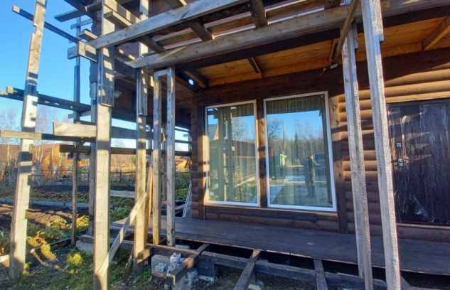 Дом обшит блокхаусом.