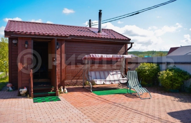 Кроме дома на участке есть: два гаража с автоматической системой открывания, летняя беседка с мангальной зоной, дровник, теплица из поликарбонада. Приятным комплементом от продавца является наличие на территории Русской бани на дровах из сруба, планировка которой включает в себя предбанник, комнату отдыха, истопную, моечная и парилку.