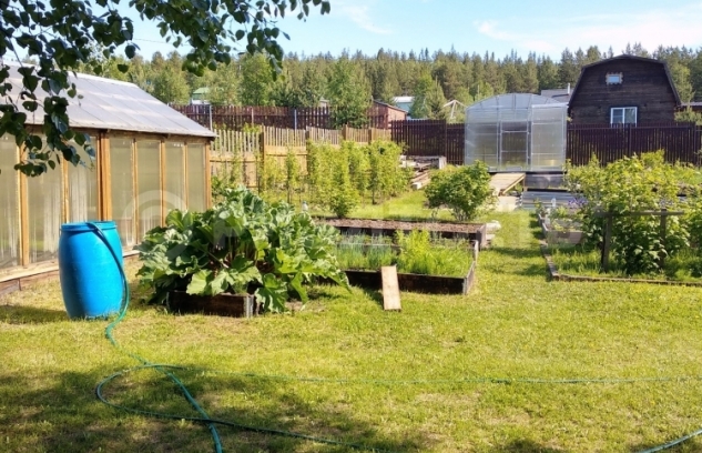 Есть дополнительные постройки: две теплицы,разработанные грядки, плодово-ягодные кустарники, беседка, хозяственные подсобные помещения.