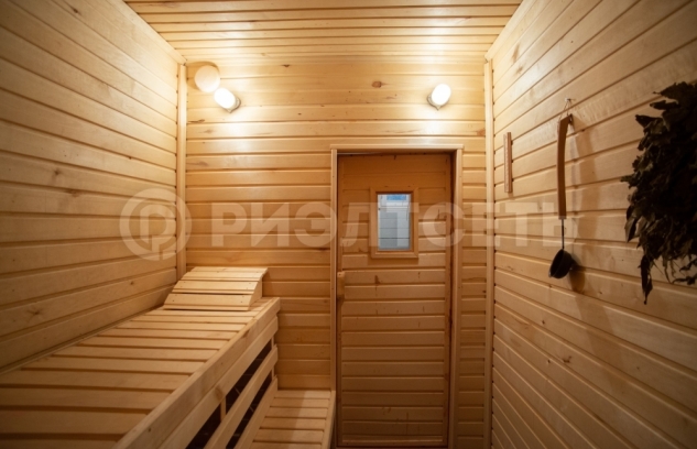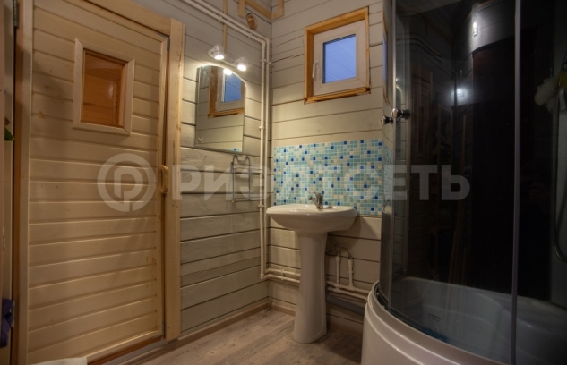 На первом этаже расположена кухня-гостиная 30м2, туалет, ванная комната с душевой кабиной и полками для хранения белья, сауна, "котельная".