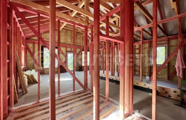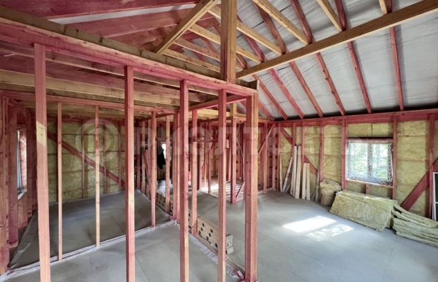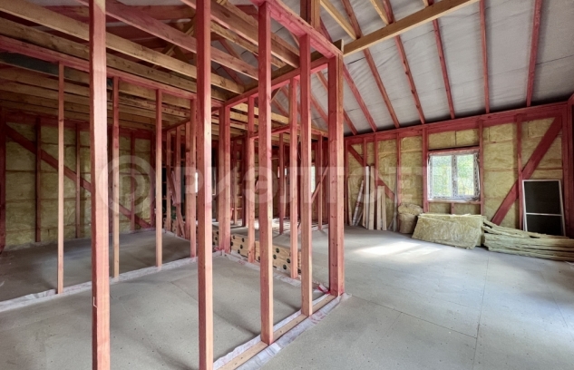 Строительство завершено только по периметру, остались работы по внутренней отделке. На участок выделено 15 кВт электроэнергии. К дому ведёт дорога, и есть официальное разрешение на её благоустройство.
